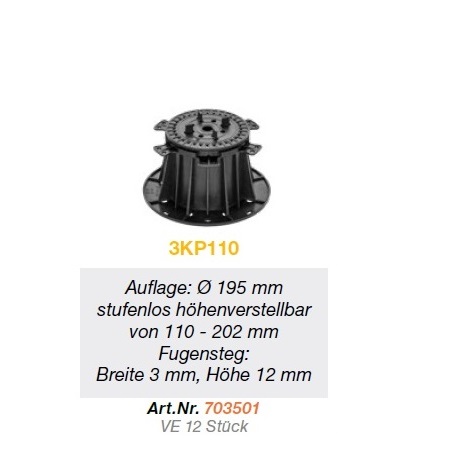 Sie erhalten 1 Karton á 12 Stelzlager stufenlos höhenverstellbar von 110 - 202 mm
