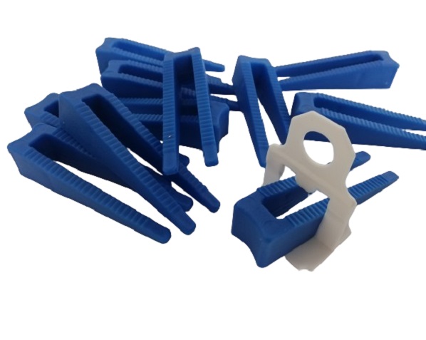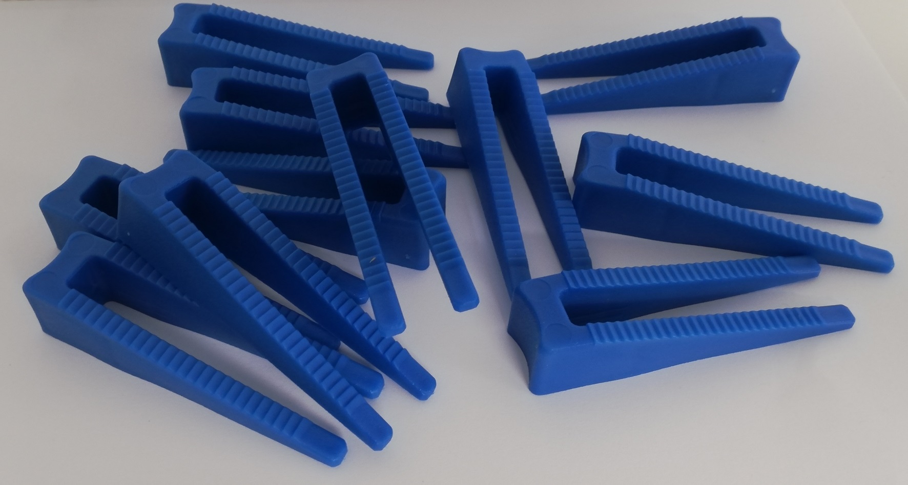 Die stabilen Keile mit zwei Beinen und Nivellierzähnen, bestehen aus flexiblem Material und verhindern eine Beschädigung der Fliesen an den Kanten.