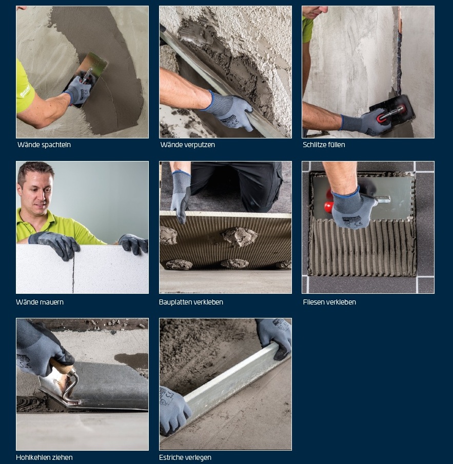 Verkleben von Fliesen, Platten, Plansteinen und Mauersteinen.