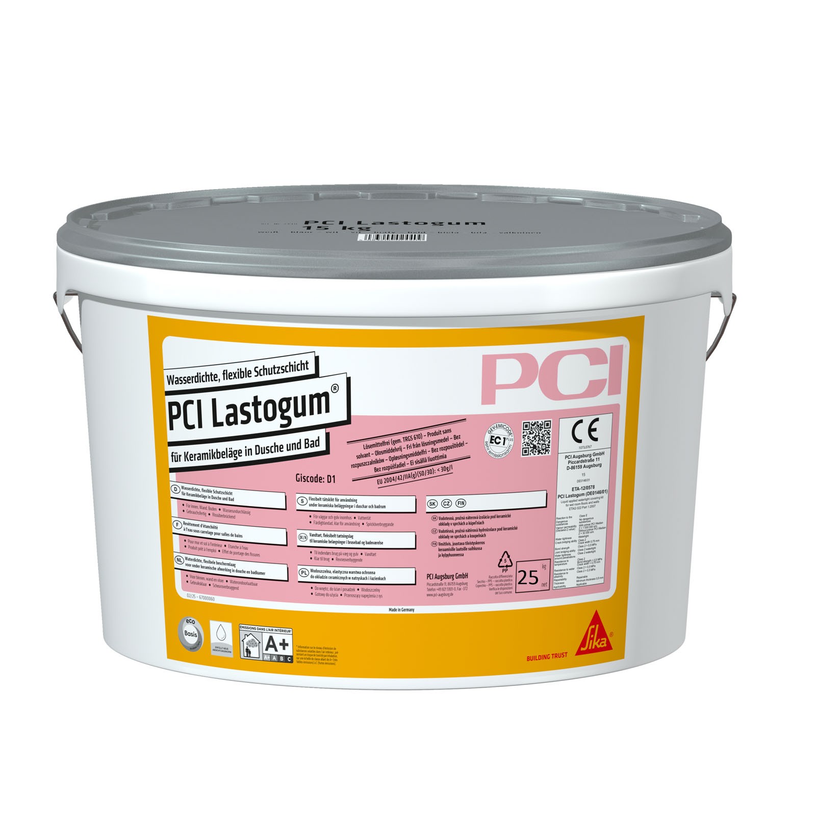 Sie erhalten 25 kg PCI Lastogum® Wasserdichte, flexible Schutzschicht unter Keramikbelägen in Dusche und Bad