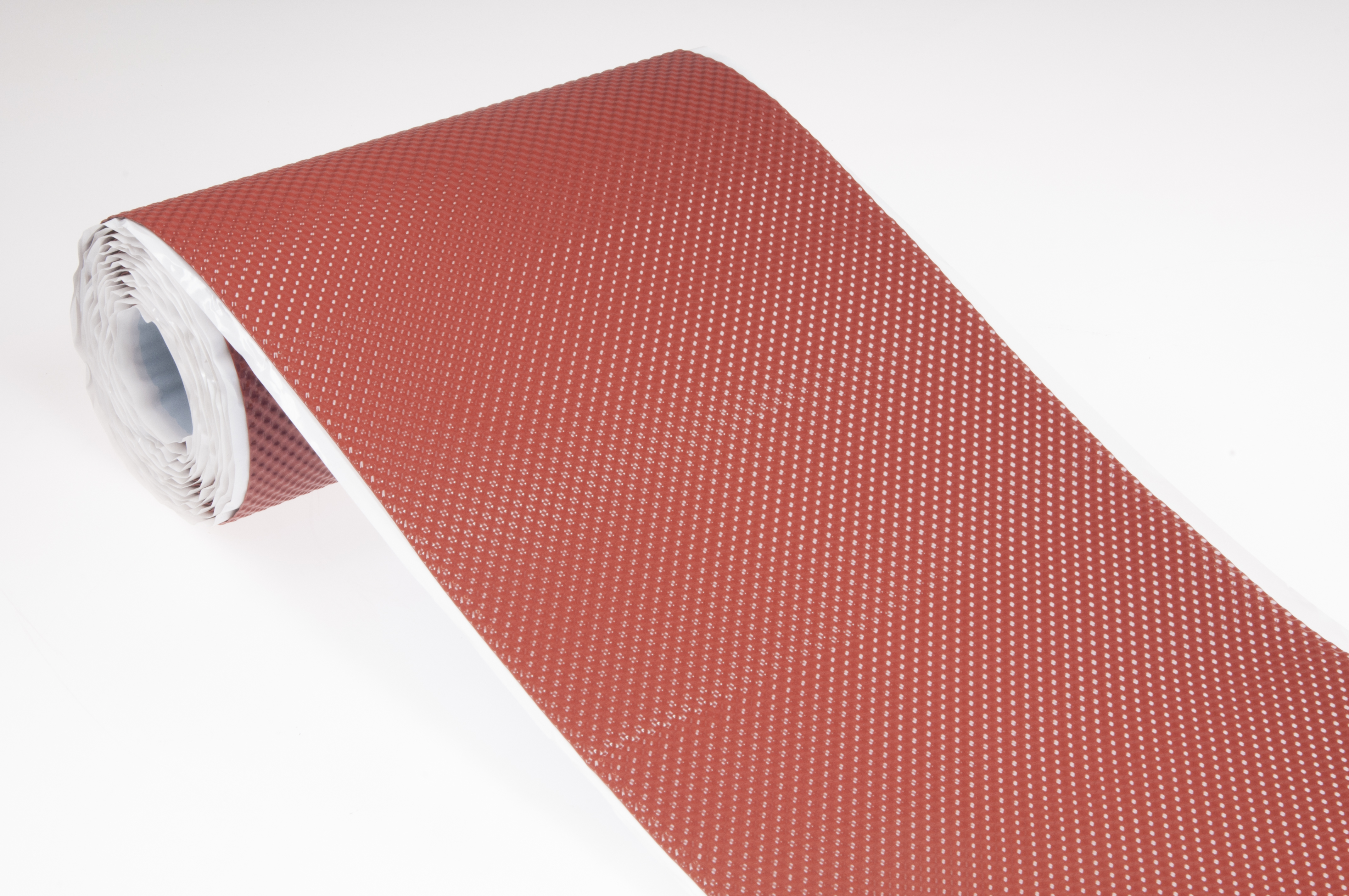 Die Zusammensetzung aus profiliertem Aluminium mit einer vollflächigen Beschichtung aus Butyl-Kautschuk-Kleber,