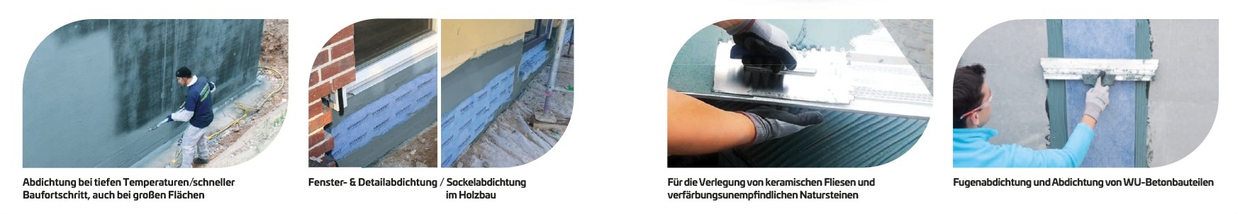RD2 The Green 1 ist eine schnellabbindende, bitumenfreie Reaktivabdichtung zur Abdichtung erdberührter Bauteile im Neubau und zur Sanierung von alten Abdichtungen.
