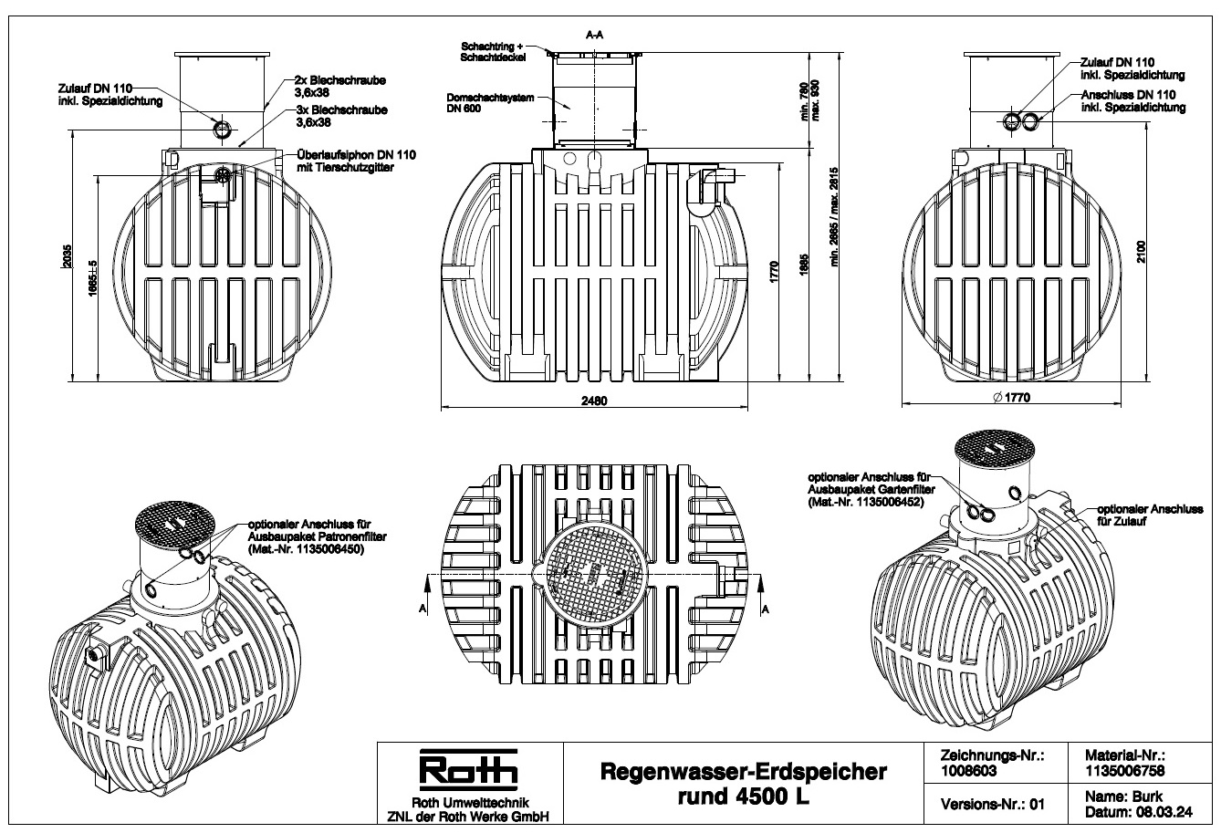 Sie erhalten 1 Erdspeicher rund á 4500 Liter mit Zubehör